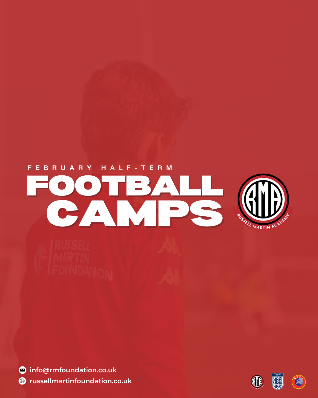 Russell Martin Foundation holiday courses are a safe, secure, and incredibly fun way for boys and girls aged 5-12 to learn everything about football, during the school holidays. From the basic skills to lessons in tactics all from UEFA/ FA qualified coaches. We offer multi day discounts when you book 3 days or more.